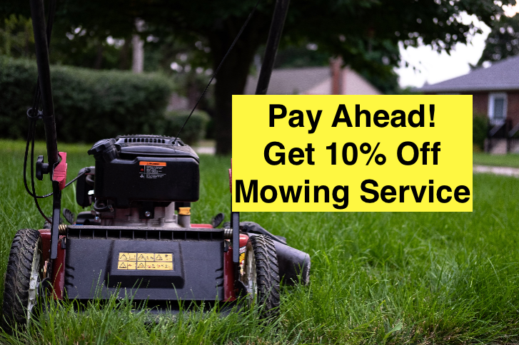 - Discounted Mowing Service -10% OFF!: Pay ahead for 3 mowing services get 10% off!